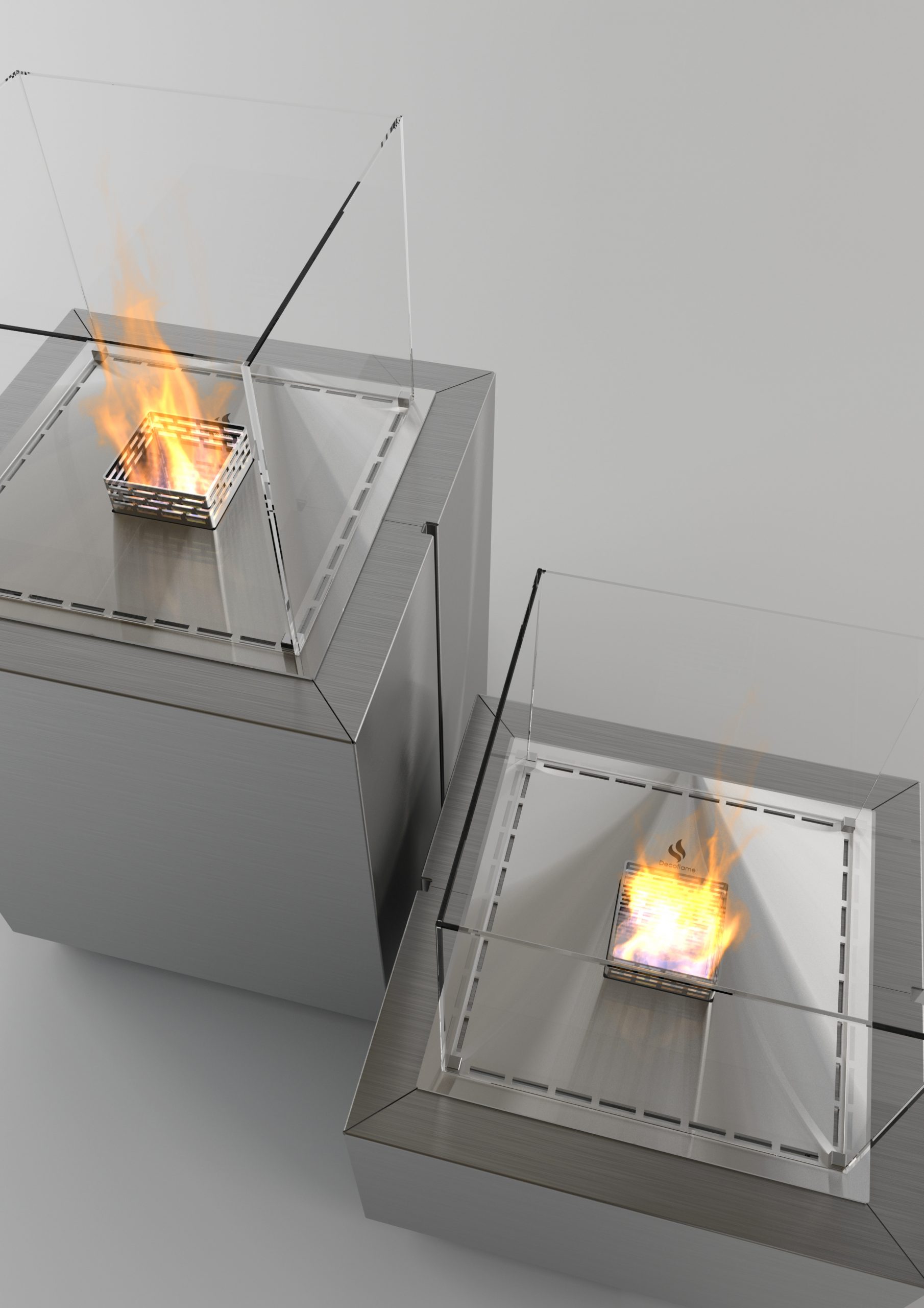 H70 x B43 x D43cm. Biopeisen Monaco Lounge gir sjarm og romanse, ute som inne. Den har små, skjulte hjul og kan lett plasseres rundt i hagen, på balkongen, i stuen eller på soverommet – alle steder det er behov for ekstra varme. Farge børstet stål.